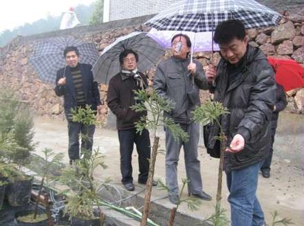 1月23日,国家林业局种苗总站赵斌处长在省种苗站站长骆文坚、中国林科院专家和总公司余梅生副总经理等陪同下,来姥山良种基地检查与指导工作。赵处长等冒雨察看了林场马尾松种质资源库、马尾松种源林、马尾松试验林等,还检查了国家扩大内需建设项目,并询问了项目进展与实施中存在的问题。赵处长肯定了姥山林场在良种建设中取得的成就,并要求我们再接再厉,在全国范围内进一步开展马尾松种质资源保护与利用上的交流与合作,以马尾松种质收集利用中心成立全国马尾松协作组,进一步加强对马尾松研究协作力度,提高马尾松种子园的产量,为提高我国良种造林普及率作出更大的贡献。(储德裕)